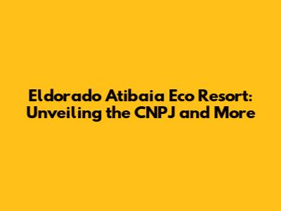 Hey there, travel enthusiasts and adventure seekers! Ever dreamt of escaping the hustle and bustle and immersing yourselves in nature's embrace? Well, if you're nodding your head, then let me introduce you to the Eldorado Atibaia Eco Resort, a true gem nestled in the heart of Brazil. We're diving deep into everything you need to know about this fantastic resort, with a special focus on the CNPJ (Cadastro Nacional da Pessoa JurÃdica), a crucial piece of information for any business, including this amazing eco-retreat. So, grab a coffee, get comfy, and let's explore this paradise together! We'll uncover what makes the Eldorado Atibaia Eco Resort so special, from its commitment to sustainability to the incredible experiences it offers.