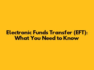 Electronic Funds Transfer (EFT): What You Need To Know