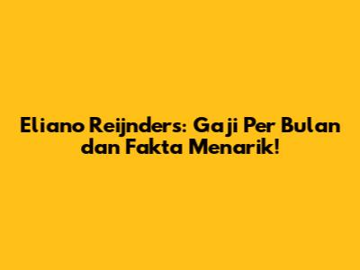 Eliano Reijnders: Gaji Per Bulan Dan Fakta Menarik!