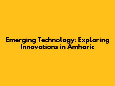 Emerging Technology: Exploring Innovations In Amharic