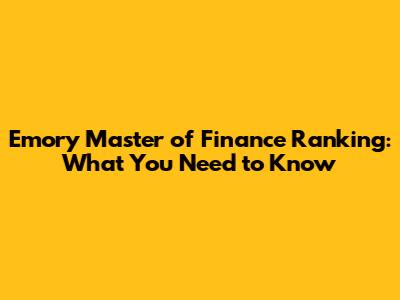 Emory Master Of Finance Ranking: What You Need To Know