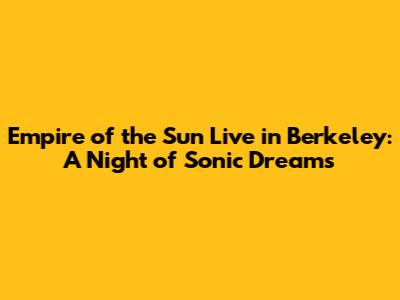 Hey guys! Get ready to dive into a shimmering pool of sound and light because we're talking about the one and only Empire of the Sun and their unforgettable tour stop in Berkeley. This isn't just a concert; it's a full-blown sensory experience that'll leave you buzzing for days. Let's break down what makes an Empire of the Sun show so special, especially when it hits a vibrant city like Berkeley.