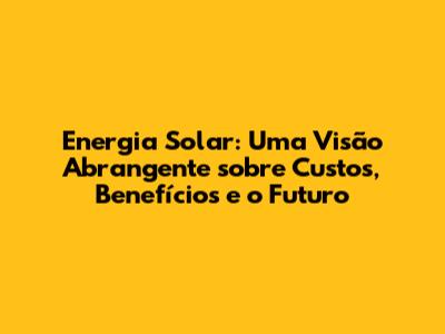Custos da Energia Solar: O Que Você Precisa Saber?