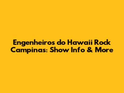 Hey guys! Are you ready to dive into the vibrant music scene of Campinas and relive the iconic sounds of Engenheiros do Hawaii? This article is your ultimate guide to everything related to Engenheiros do Hawaii in Campinas. Whether you're a die-hard fan or just curious about their impact, we've got all the juicy details covered. Let's get started!