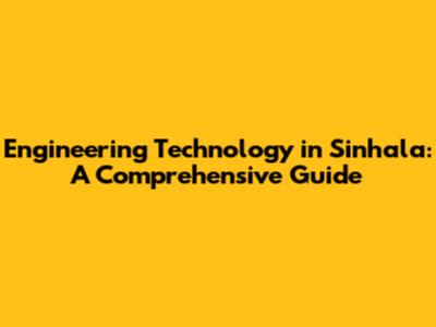 Engineering Technology In Sinhala: A Comprehensive Guide