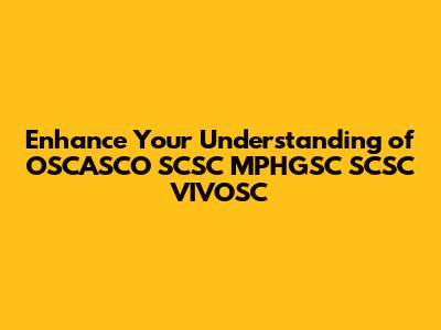 Enhance Your Understanding Of OSCASCO SCSC MPHGSC SCSC VIVOSC