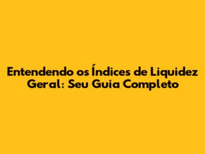 Entendendo Os Índices De Liquidez Geral: Seu Guia Completo