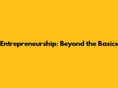Entrepreneurship: Beyond The Basics