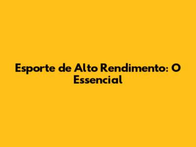 Esporte De Alto Rendimento: O Essencial