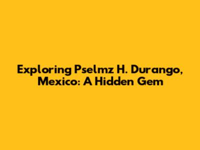 Exploring Pselmz H. Durango, Mexico: A Hidden Gem