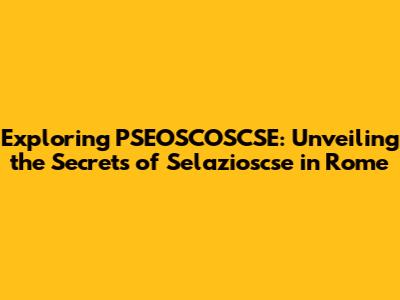 Exploring PSEOSCOSCSE: Unveiling The Secrets Of Selazioscse In Rome