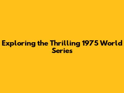 Exploring The 1975 World Series