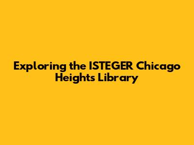 Hey guys! Ever wondered about a hidden gem in Chicago Heights? Well, let me introduce you to the ISTEGER Chicago Heights Library. This isn't just your average library; it's a hub of knowledge, community, and opportunity, and the perfect place for you to explore. Whether you're a bookworm, a student, a lifelong learner, or just looking for a cozy spot to hang out, the ISTEGER Library has something for everyone. So, let's dive in and uncover what makes this library so special and why it should be on your list of places to visit.