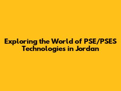 Exploring The World Of PSE/PSES Technologies In Jordan