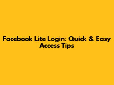 Facebook Lite Login: Quick & Easy Access Tips