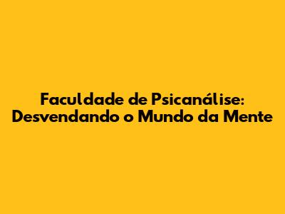 Faculdade de Psicanálise, uma jornada fascinante para quem busca compreender os intricados labirintos da mente humana. Mas, afinal, o que faz um psicanalista e o que esperar de uma formação em psicanálise? Vamos mergulhar nesse universo e desvendar os mistérios que envolvem essa área apaixonante. Se você está considerando uma carreira em psicanálise, prepare-se para uma aventura de autoconhecimento e de profundo impacto na vida de outras pessoas.