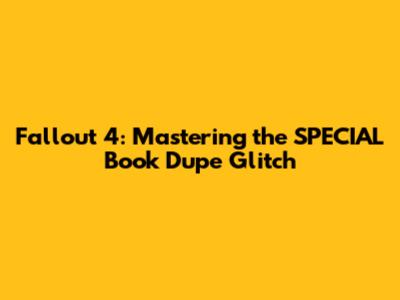 There you have it! The SPECIAL book dupe glitch in Fallout 4. Use this knowledge wisely, and may your stats forever be in your favor. Happy gaming, wastelanders! Mastering the SPECIAL book dupe glitch in Fallout 4 can be a game-changer for players looking to maximize their character's potential and dominate the wasteland. By following the steps outlined in this guide, you can easily duplicate the "You're SPECIAL!" book and allocate multiple points to your SPECIAL stats, significantly enhancing your abilities and giving you a major advantage in the game. However, it's important to remember that the use of glitches is a personal choice, and you should consider the ethical implications before using them. If you're comfortable with the idea of exploiting the game's mechanics, then there's no reason why you shouldn't use the SPECIAL book dupe glitch to enhance your gaming experience. But if you're concerned about the ethical implications, then you might want to consider other ways to improve your character's stats, such as leveling up, completing quests, and finding special items. Ultimately, the goal is to have fun and enjoy the game in your own way. So experiment with different strategies, explore the wasteland, and don't be afraid to try new things. With a little bit of creativity and determination, you can overcome any challenge and become a true legend of Fallout 4.