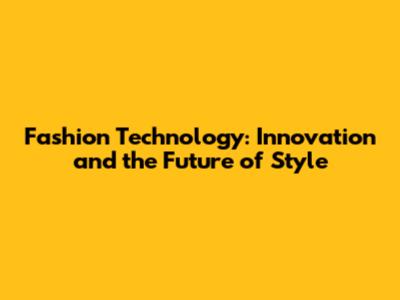 Fashion Technology: Innovation And The Future Of Style
