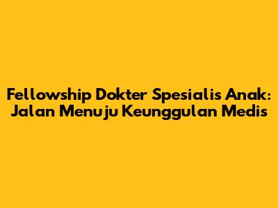 Fellowship dokter spesialis anak adalah program pendidikan lanjutan yang ditempuh oleh dokter spesialis anak setelah menyelesaikan pendidikan spesialisasi. Program ini dirancang untuk memperdalam pengetahuan dan meningkatkan keterampilan di bidang subspesialisasi tertentu dalam ilmu kesehatan anak. Singkatnya, fellowship ini adalah jenjang karir tertinggi bagi dokter anak yang ingin menjadi ahli di bidang tertentu, seperti kardiologi anak, neurologi anak, atau hematologi onkologi anak. Program fellowship ini biasanya berlangsung selama 2 hingga 3 tahun, tergantung pada bidang subspesialisasi yang dipilih. Selama program, peserta akan mendapatkan pengalaman klinis yang intensif, terlibat dalam penelitian, dan mengikuti pelatihan khusus untuk menguasai kompetensi di bidang tersebut. Tujuan utama dari fellowship adalah untuk mencetak dokter anak yang memiliki keahlian dan pengetahuan mendalam di bidang subspesialisasi tertentu, sehingga mampu memberikan pelayanan medis terbaik bagi pasien anak-anak.