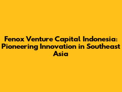 Hey guys, let's dive into the exciting world of Fenox Venture Capital Indonesia! This firm is making some serious waves in the Southeast Asian startup scene, and we're going to explore what makes them tick. From their investment strategies to the impact they're making, we'll cover it all. So, buckle up and get ready for a deep dive into the heart of Indonesian venture capital.