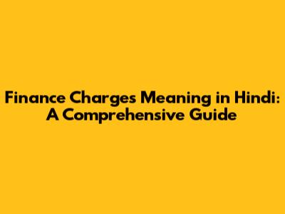 Finance Charges In Hindi: Understanding The Basics