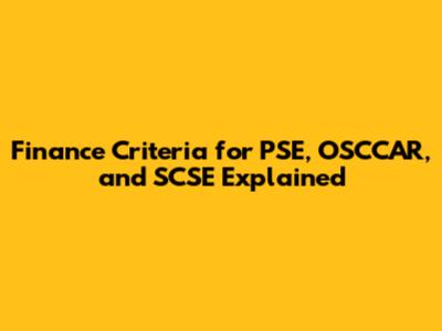 Finance Criteria For PSE, OSCCAR, And SCSE Explained