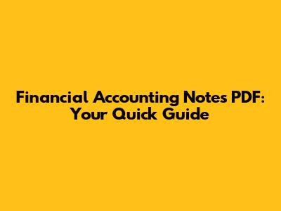 Financial Accounting Notes PDF: Your Quick Guide
