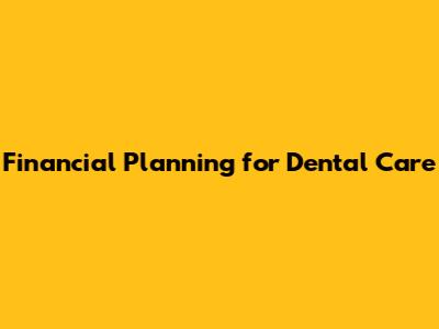 Financial Planning For Dental Care