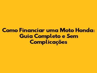 Financiar Moto Honda: Guia Fácil E Sem Dúvidas