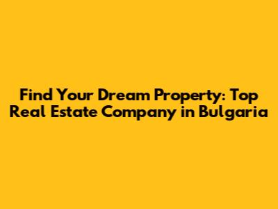 Find Your Dream Property: Top Real Estate Company In Bulgaria
