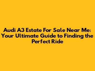 Hey there, car enthusiasts! Are you on the hunt for a stylish, practical, and fun-to-drive vehicle? If so, you've probably considered the Audi A3 Estate. This fantastic car blends the sporty feel of an Audi with the versatility of an estate, making it a popular choice for both families and individuals. But how do you find an Audi A3 Estate for sale near me? Don't worry, guys, I've got you covered! This guide will walk you through everything you need to know, from where to look to what to consider before making a purchase. So, let's dive in and find you the perfect Audi A3 Estate!