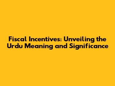 Fiscal Incentives Explained: Urdu Meaning And Benefits