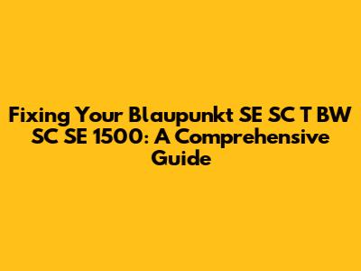 Fixing Your Blaupunkt SE SC T BW SC SE 1500: A Guide