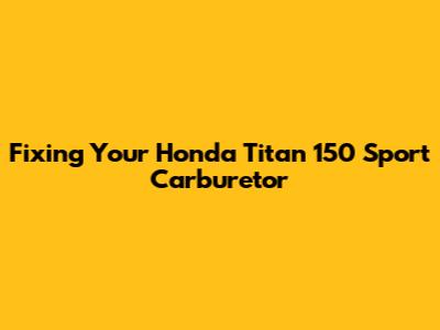 Fixing Your Honda Titan 150 Sport Carburetor