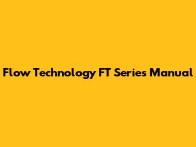 Flow Technology FT Series Manual: Your Go-To Guide