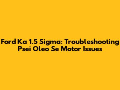 Ford Ka 1.5 Sigma: Troubleshooting Psei Oleo Se Motor Issues