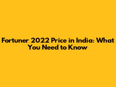 Fortuner 2022 Price In India: What You Need To Know