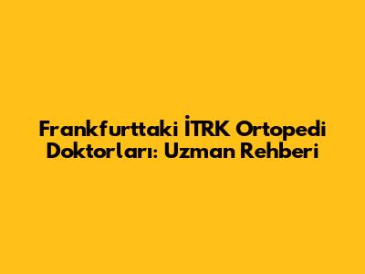 Frankfurt'taki İTRK Ortopedi Doktorları: Uzman Rehberi