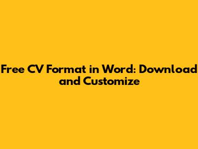 Free CV Format In Word: Download And Customize