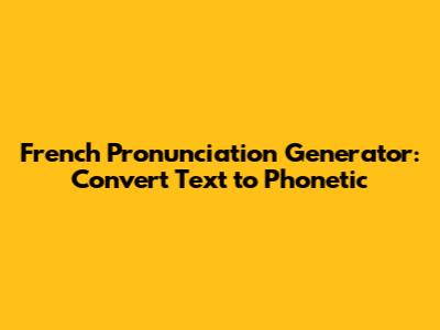 French Pronunciation Generator: Convert Text To Phonetic