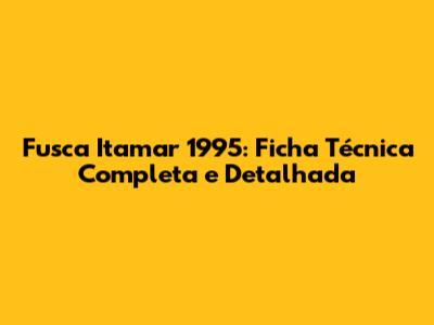 Ficha Técnica Detalhada do Fusca Itamar 1995