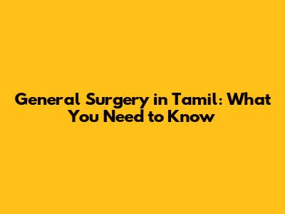 General Surgery In Tamil: What You Need To Know