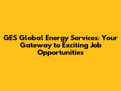 GES Global Energy Services: Job Opportunities