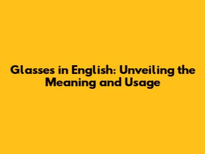 Glasses In English: Unveiling The Meaning And Usage