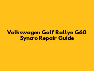 Hey guys! Ever heard of the Volkswagen Golf Rallye G60 Syncro? It's a seriously cool car, a rally-inspired beast from the late 80s, and early 90s. This car is pretty rare and a bit of a legend among car enthusiasts, boasting a unique blend of performance and classic VW charm. Owning one of these beauties comes with its own set of responsibilities, especially regarding maintenance and repairs. This comprehensive guide will dive deep into everything you need to know about keeping your Golf Rallye G60 Syncro in tip-top shape. We'll cover common issues, repair procedures, and tips to ensure your car stays running strong for years to come. Buckle up, because we're about to get technical!