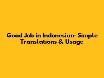 Good Job In Indonesian: Simple Translations & Usage