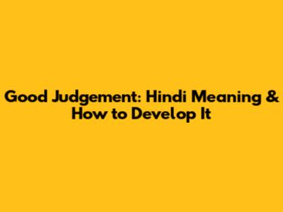 What Does "Good Judgement" Mean in Hindi?