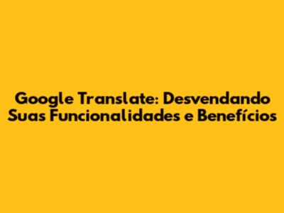 Google Translate: Desvendando Suas Funcionalidades E Benefícios