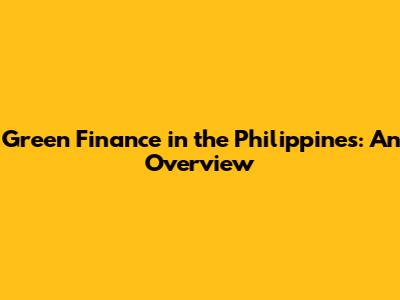 Green Finance In The Philippines: An Overview