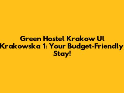Hey guys! Are you planning a trip to the beautiful city of Krakow and looking for a budget-friendly and awesome place to stay? Look no further! Green Hostel Krakow on Ul Krakowska 1 is your go-to spot. In this article, we're diving deep into what makes this hostel a fantastic choice for travelers like you. We'll cover everything from its prime location to its cozy atmosphere and the amazing amenities it offers. Get ready to discover why Green Hostel Krakow should be at the top of your list!